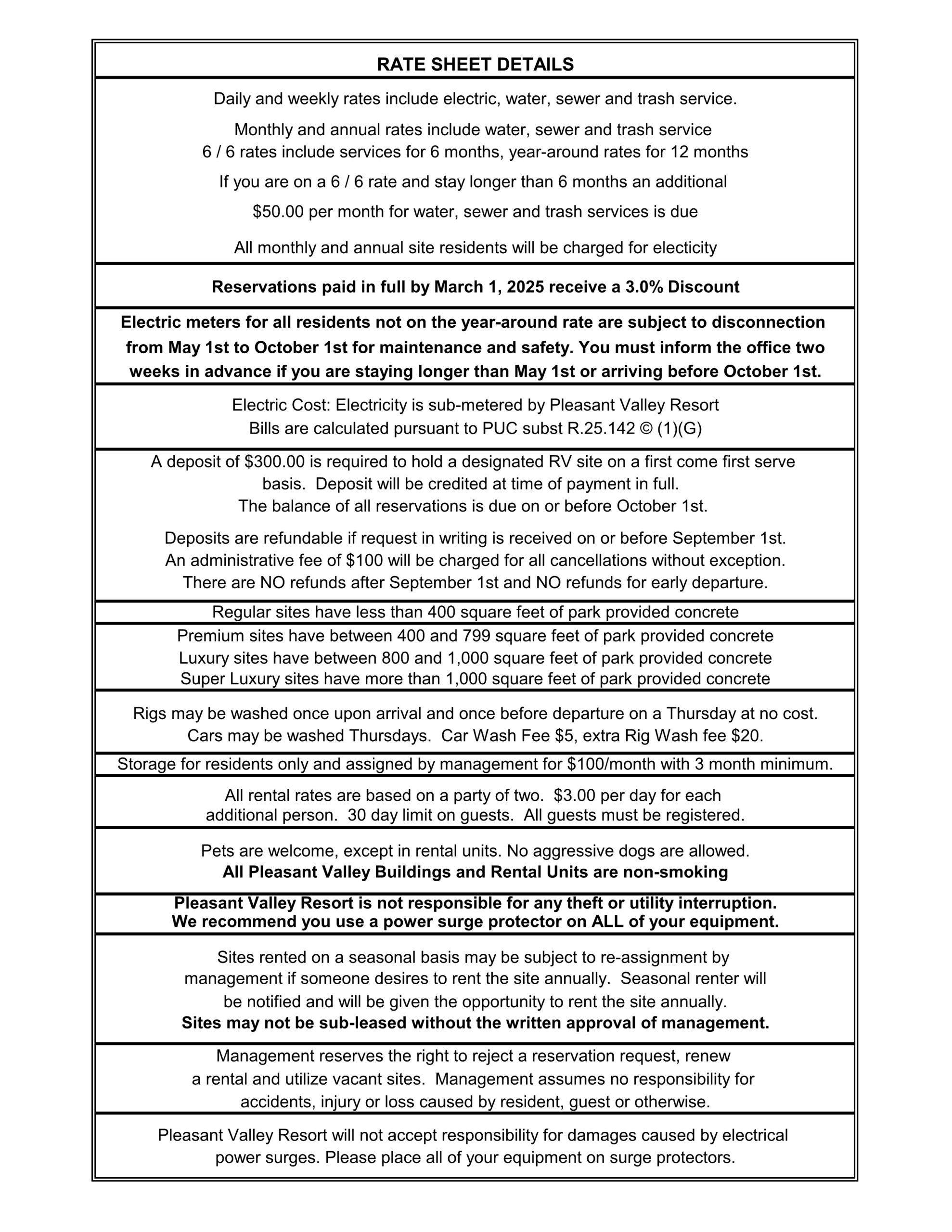 | 6/6 (Mobile Home sites) | $3,650 per year | $3,850 per year | $4,050 per year | $4,170 per year |